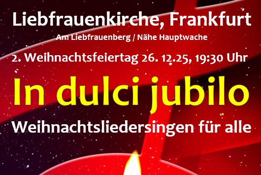 Ökumenisches Adventsliedersingen zum Frankfurter Weihnachtsmarkt Herzlich Willkommen zum Adventsliedersingen! 30 Minuten Musik genießen… Von Samstag, 29. November bis Sonntag, 21. Dezember jeweils um 19.30 Uhr singen Chöre und spielen Instrumentalensembles für eine halbe Stunde Musik zum Advent. …und Mitsingen Gemeinsam mit den Besucherinnen und Besuchern werden bekannte Adventslieder gesungen. Singen Sie mit! Der […]